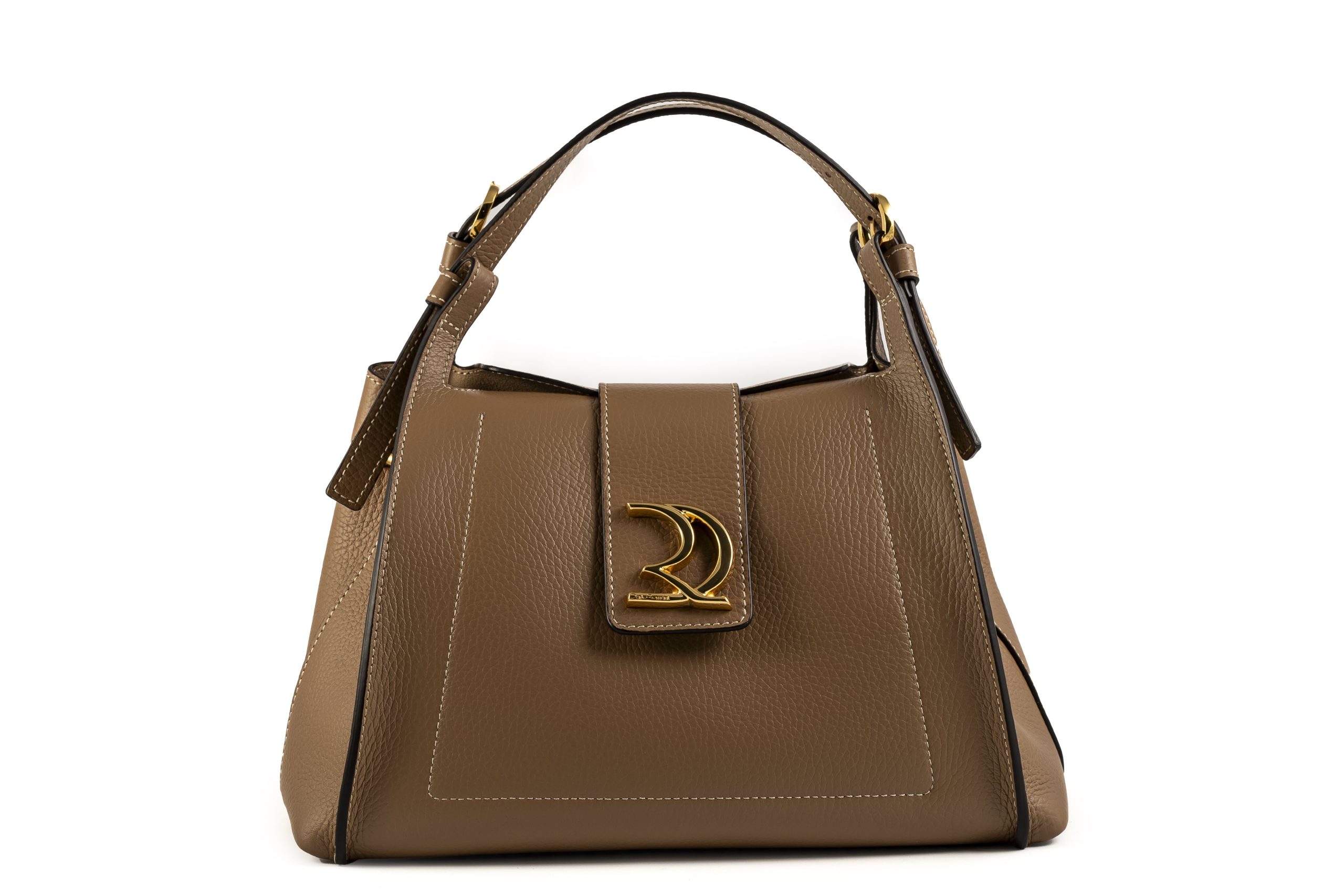 BORSA A MANO IN PELLE DI VITELLO DOUBLE DALLA GRANA DEFINITA CHIUSURA CON PATTA MANICI REGOLABILI LUCE 22 CM TASCA INTERNA CON ZIP E DOPPIA TASCA A PARETE